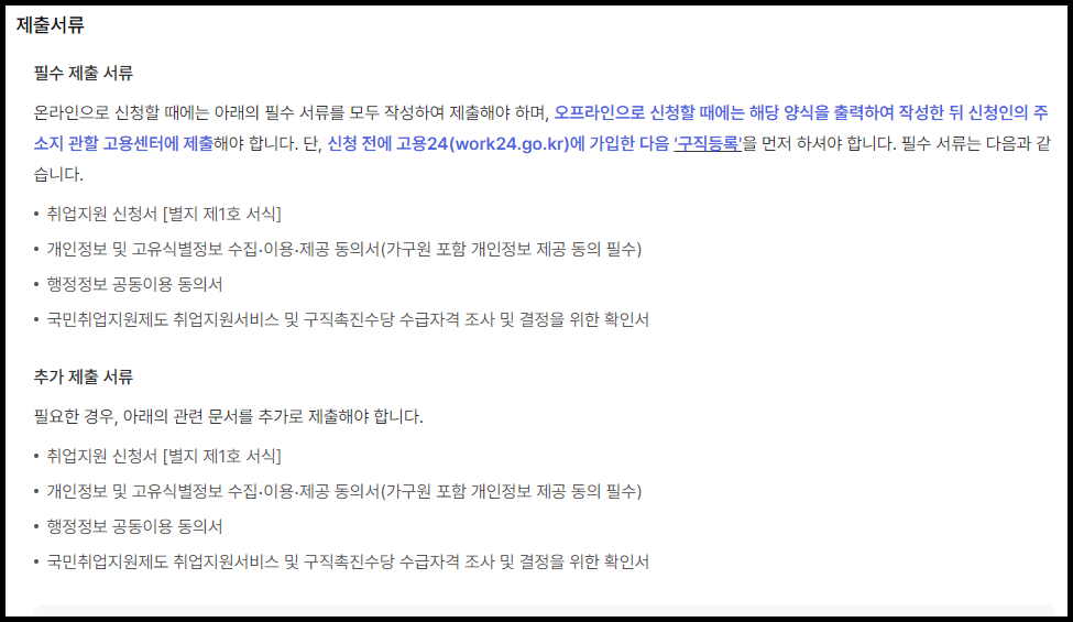 - 워크넷 구직등록: 신청 전 워크넷에 구직등록을 해야 합니다.