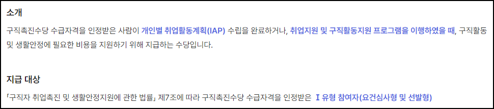 또한, 경제적 어려움을 겪는 구직자들에게는 구직촉진수당을 지급하여 생활안정에 도움을 줘 구직활동에 전념할 수 있도록 지원합니다.