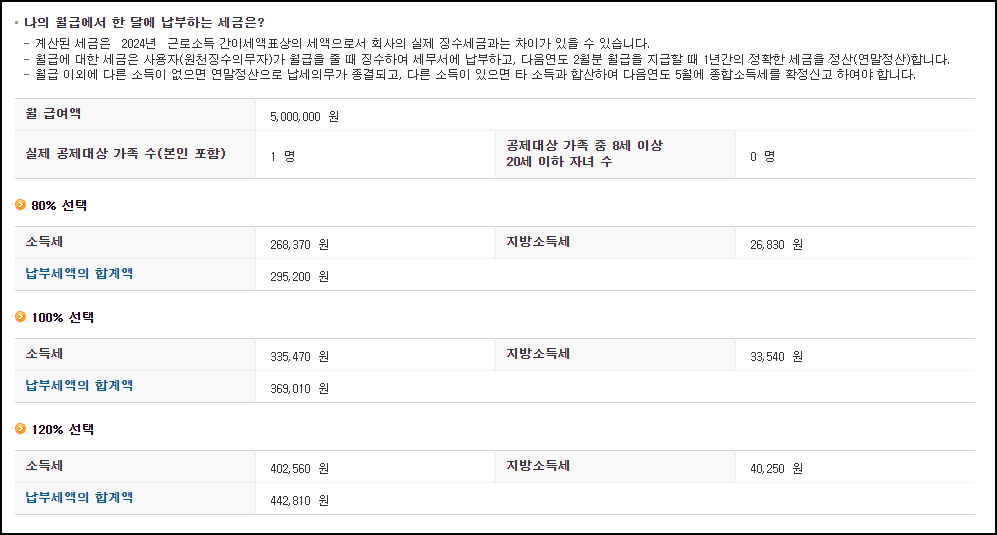 이럴 때에는, 국세청에서 제공하는 '근로소득세 계산기'를 이용해 보세요.