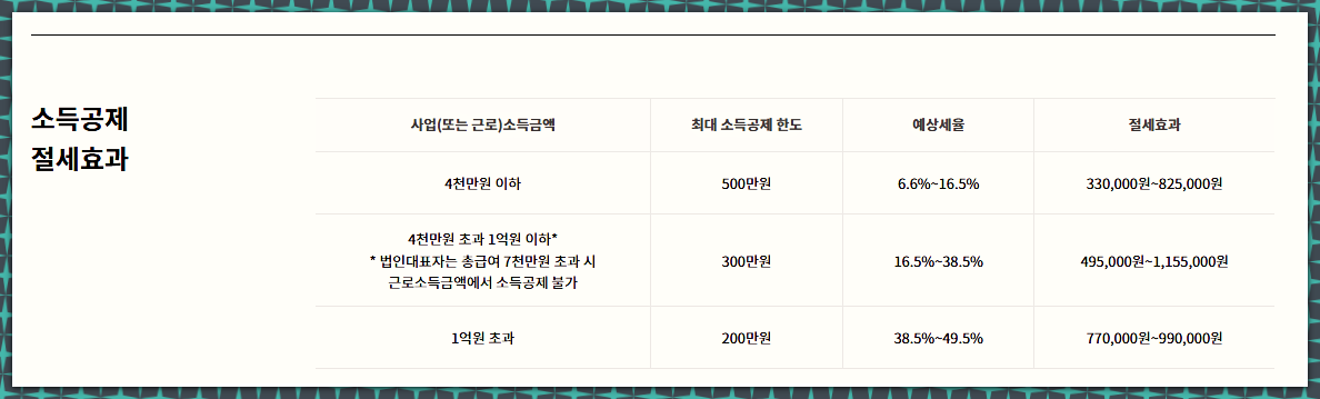 2. 소득공제 혜택 세금 절감: 노란우산공제에 납부한 금액은 소득공제 대상이 되어 종합소득세를 절감할 수 있는 혜택을 제공합니다. 최대 500만 원까지 소득공제를 받을 수 있으며, 이는 개인사업자와 법인 사업자 모두에게 해당됩니다. 이를 통해 사업자의 세금 부담을 줄일 수 있습니다.