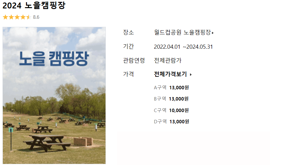 - 노을캠핑장 주자창 주소 : 서울시 마포구 하늘공원로 108