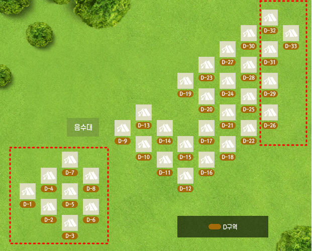 D구역에서 조용한 자리를 원하신다면 넓은 잔디밭이 펼쳐있는 30번대 구역을 추천합니다.
