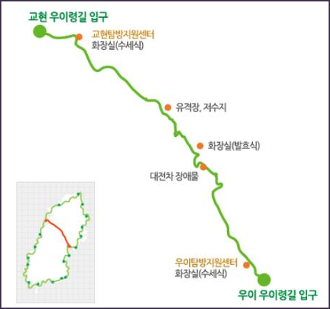 우이령길 탐방은 우이 우이령길 입구와, 교현 우이령길 입구 두가지 방법으로 입장할 수 있습니다. 전체 코스에서 화장실은 총 3곳으로 준비되어있습니다.