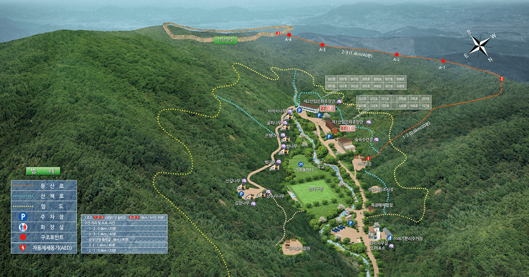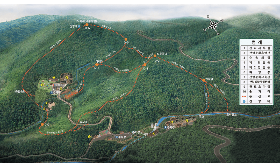 - 야영장: 캠핑을 즐길 수 있는 공간으로, 사설 캠핑장에 비해 저렴한 가격에 이용할 수 있습니다.