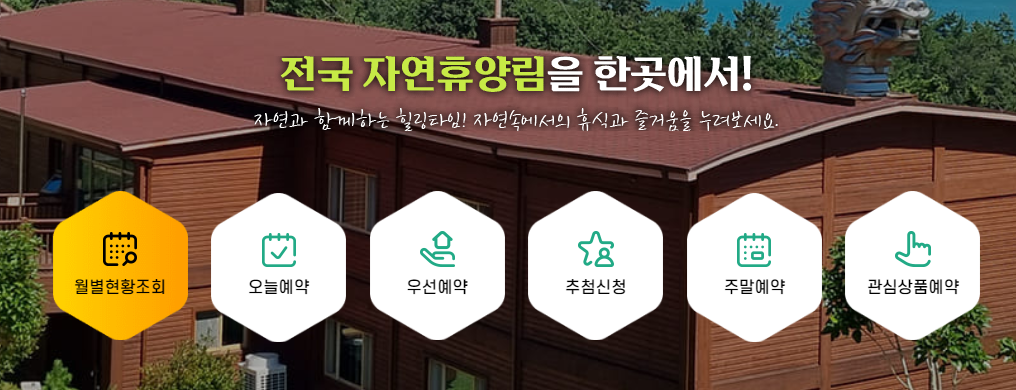 예약을 위해서는 숲나들e 홈페이지에 회원가입이 필수이니 사전에 미리 가입을 해두고 로그인 후 예약을 이용해 주세요.