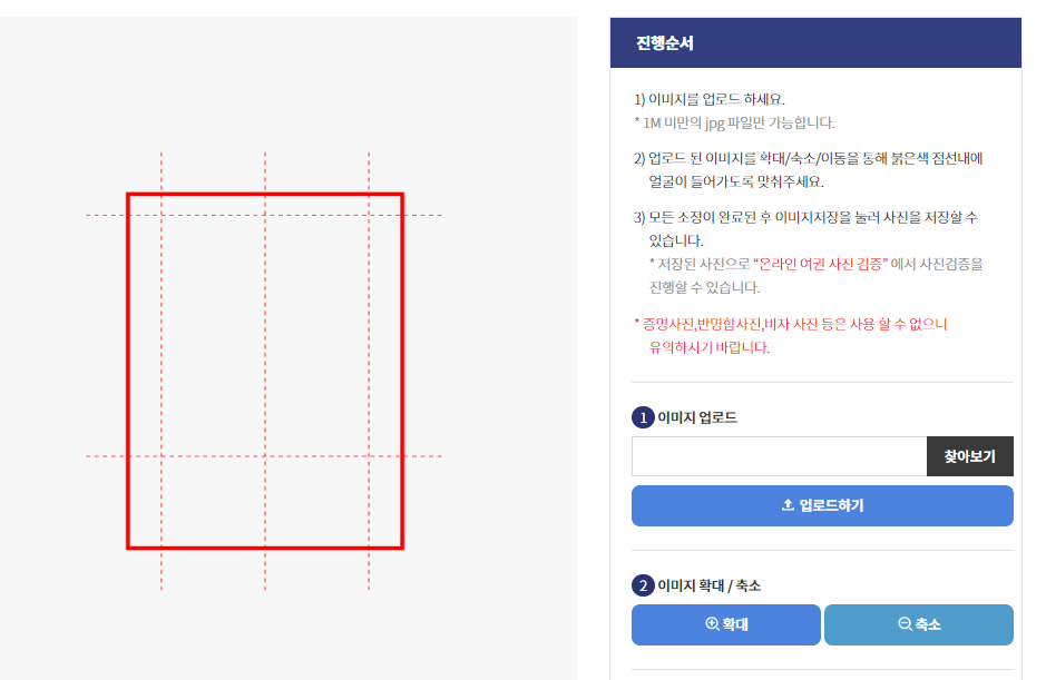 온라인 재발급 시 여권사진 규격