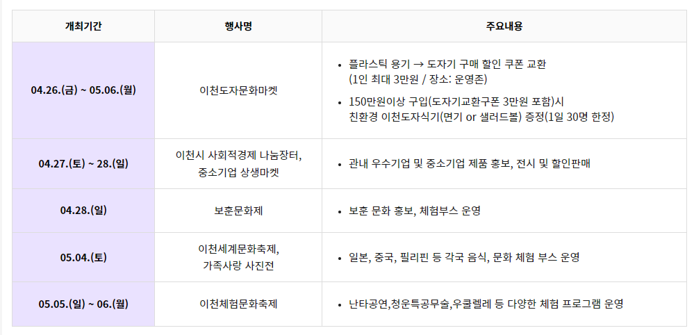 이천 도자기 축제 일정