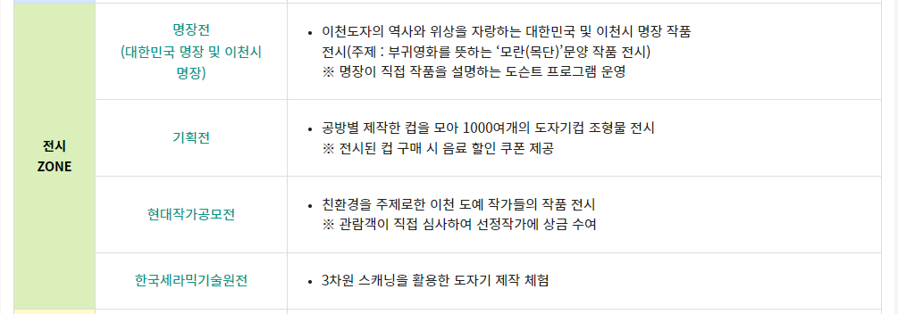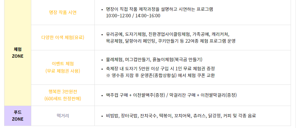 이천 도자기축제 행사 프로그램