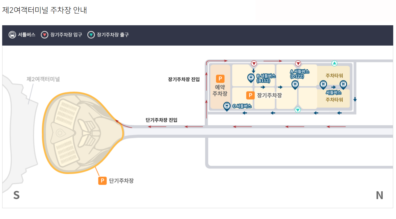 장기주차장은 소형과 대형이 이용할 수 있는 주차장이나, 1 터미널의 경우 장기주차장 내 버스 주차가 불가능하여, 단체나 전세버스는 화물터미널을 이용해야 합니다.