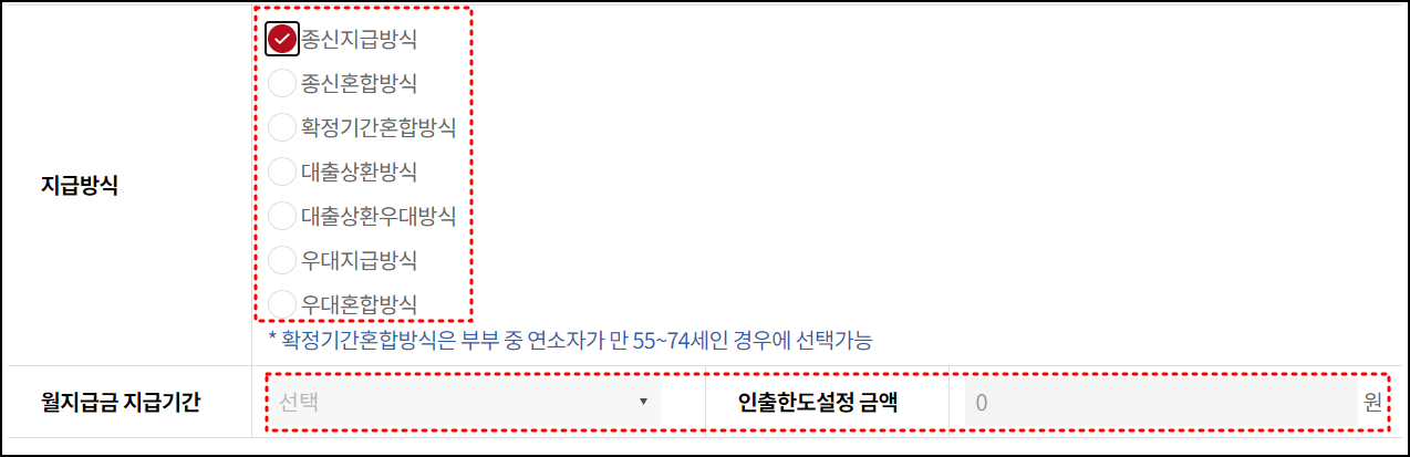 부부 중 한 명이 만 55세 이상이어야 합니다. 단, 더 유리한 조건으로 많은 수령액을 받고자 한다면 65세 이상이 된 다음 가입하는 것을 추천합니다.