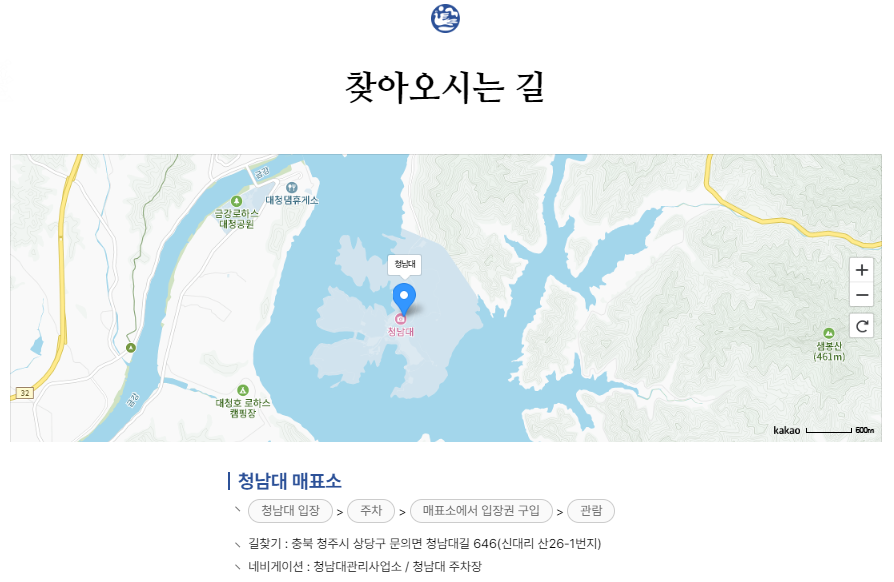 • 청남대 위치 : 충북 청주시 상당구 문의면 청남대길 646