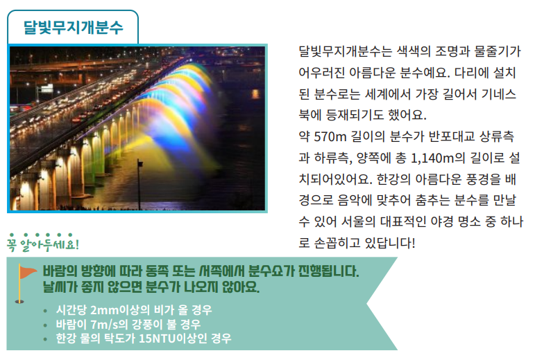 - 운영코스 : 반포달빛길 / 여의별빛길