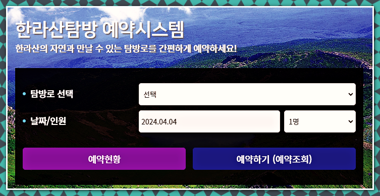 탐방로예약은 한라산 탐방로예약 시스템 홈페이지를 통해서 할 수 있습니다. 홈페이지에 접속하면 메인페이지에서 바로 예약을 진행할 수 있으며, 예약 현황을 통해 원하는 날짜의 예약 가능여부 확인해보세요.