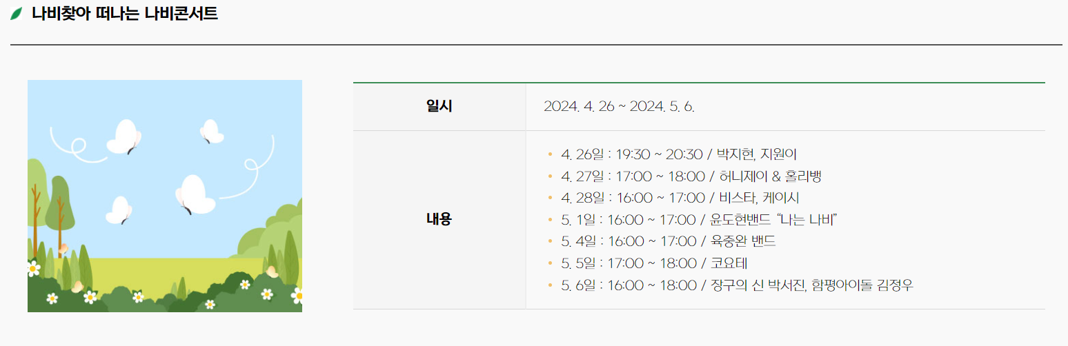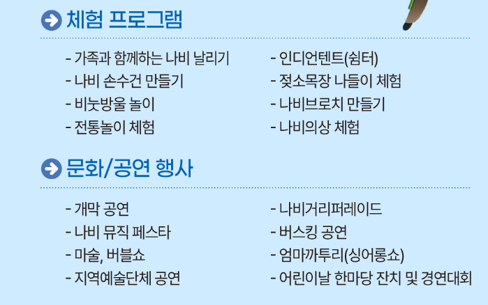 - 예매 이벤트 : 함평 나비축제에서 사용할 수 있는 함평사랑상품권 지급