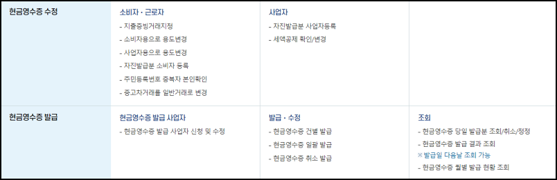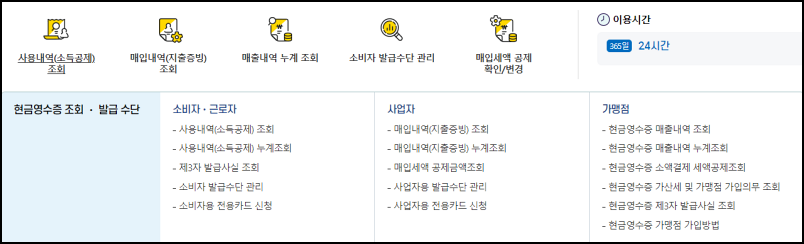 사업자는 매입자료나 지출증빙 조회 등을 할 수 있고, 현금영수증을 발급하는 가맹점은 현금 매출 조회와 발급업무가 가능하니 꼭 현금영수증 홈페이지를 이용해 보세요.