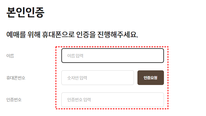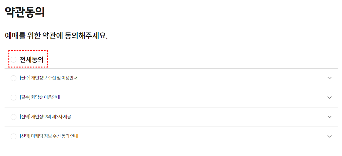 입장권 예매하기 선택 후 이용약관 동의와 본인인증을 진행.