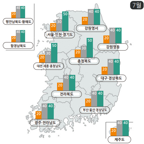 동부지방은 7월쯤 태풍의 영향을 받아 추가적인 강수량 피해가 늘어날 가능성이 있으니, 해당 지역으로 여행을 계획하고 있다면 장마와 태풍으로 인한 날씨 변화를 주의 깊게 살피는 것이 좋습니다.