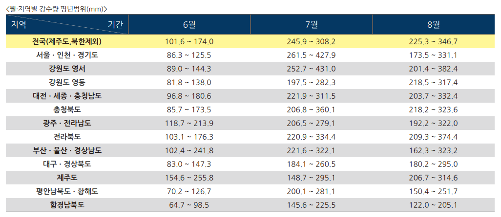 여행계획을 세우기 전 2024년 장마예상기간을 확인하고 올여름휴가계획에 참고해 보시길 바랍니다.